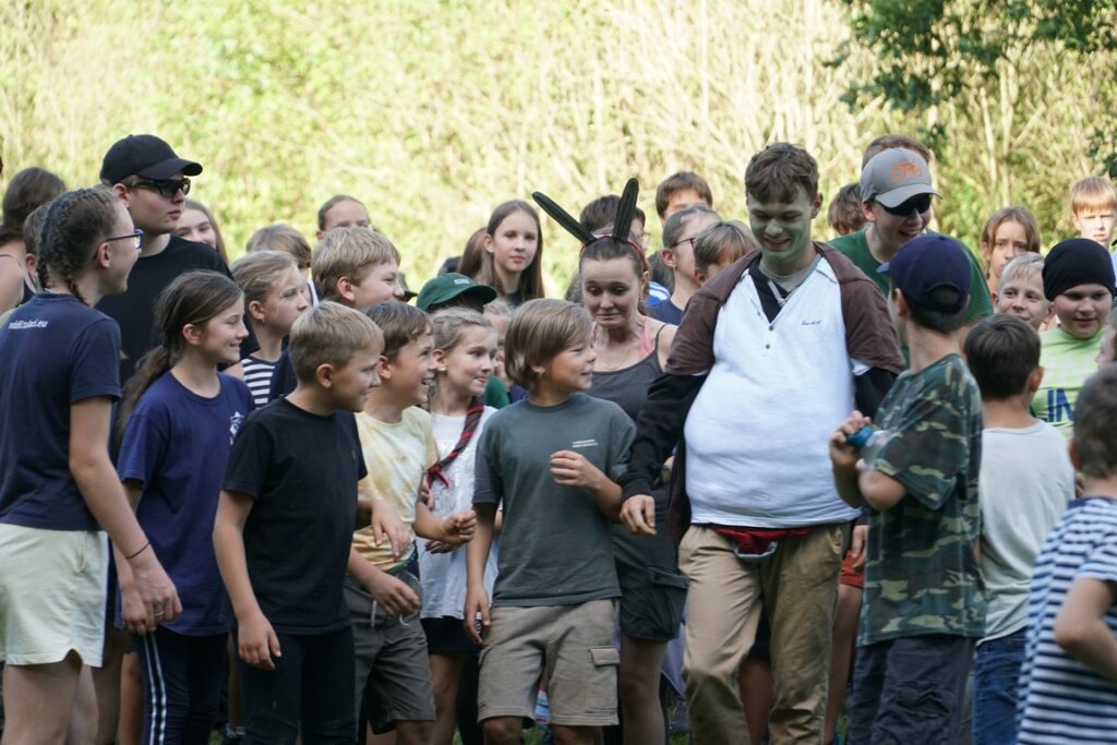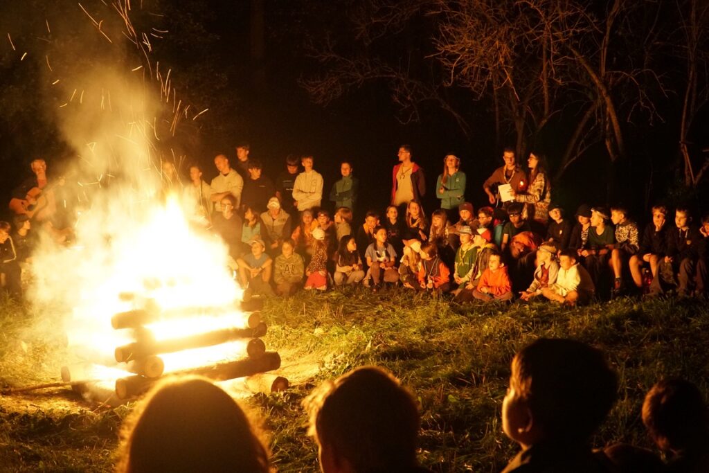 Sobotní večer patřil slavnostnímu ohni. Oheň vyšlehl do výšky, rozezpívaly se hlasivky přítomných a rozdrnčely se kytary. Některé písně oddíly přetextovaly do tematicky Srazu s oslíkem a hraděm. Během chvíle jsme se smáli, tleskali, obdivovali vtip i odvahu účinkujících u scének (koza nechyběla). Byly to chvíle, které zůstanou dlouho v paměti – nejen díky ohni a písním, ale hlavně díky tomu, že jsme je prožili společně.
