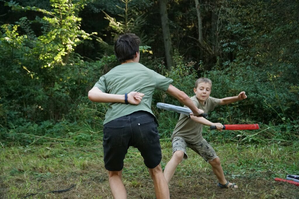 Když jsme nehráli hry, starali jsme se o každodenní věci. Stavěli jsme stany, vařili na ohništích, která jsme sami vyrobili, a zjišťovali, že i obyčejné činnosti se v takovém společenství mění v dobrodružství. Trochu kouře v očích, připečené jídlo v kotlíku, ranní opravy orosených pomuchlaných tarpů – a přitom radost z toho, že všechno zvládáme sami.